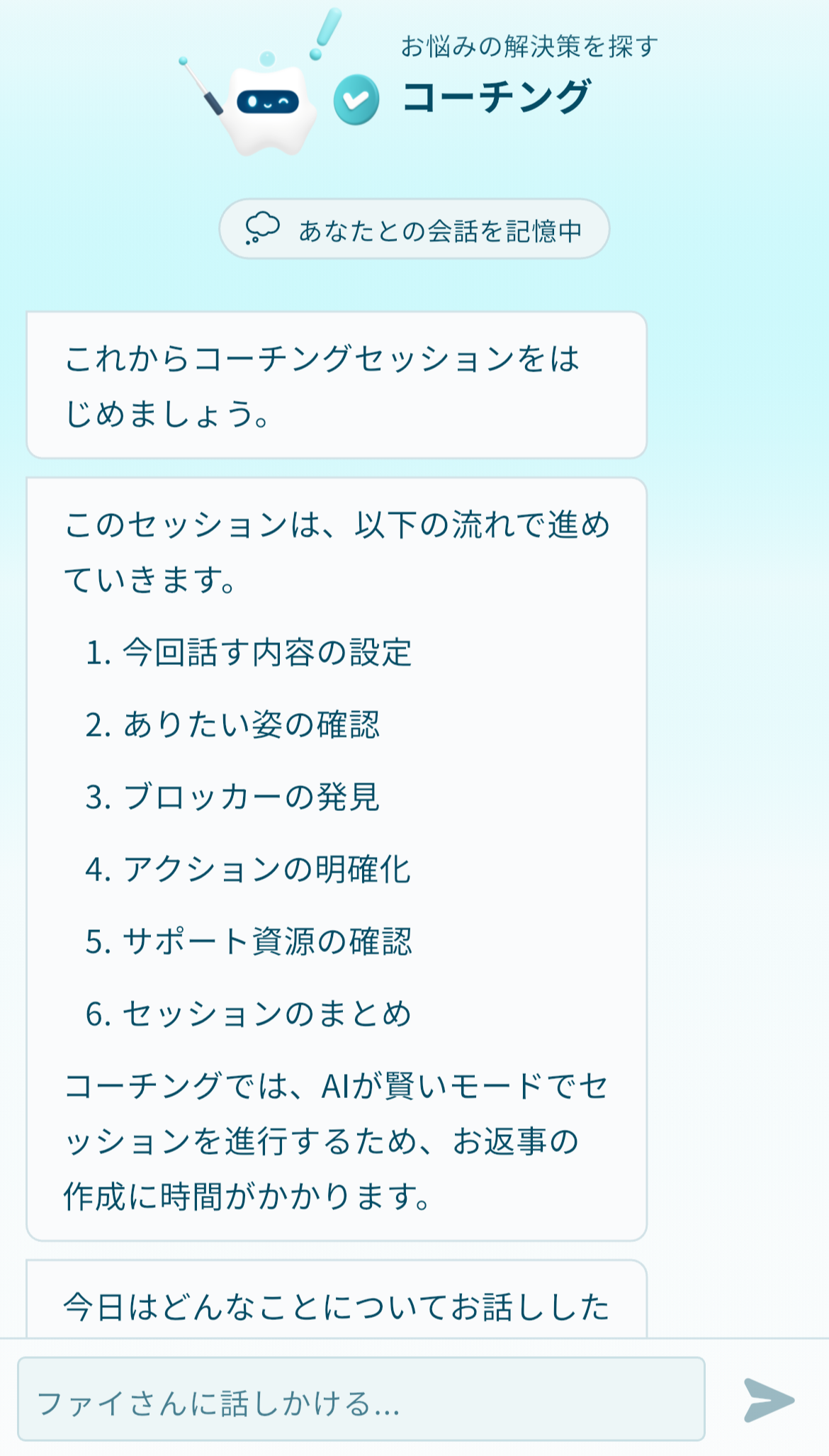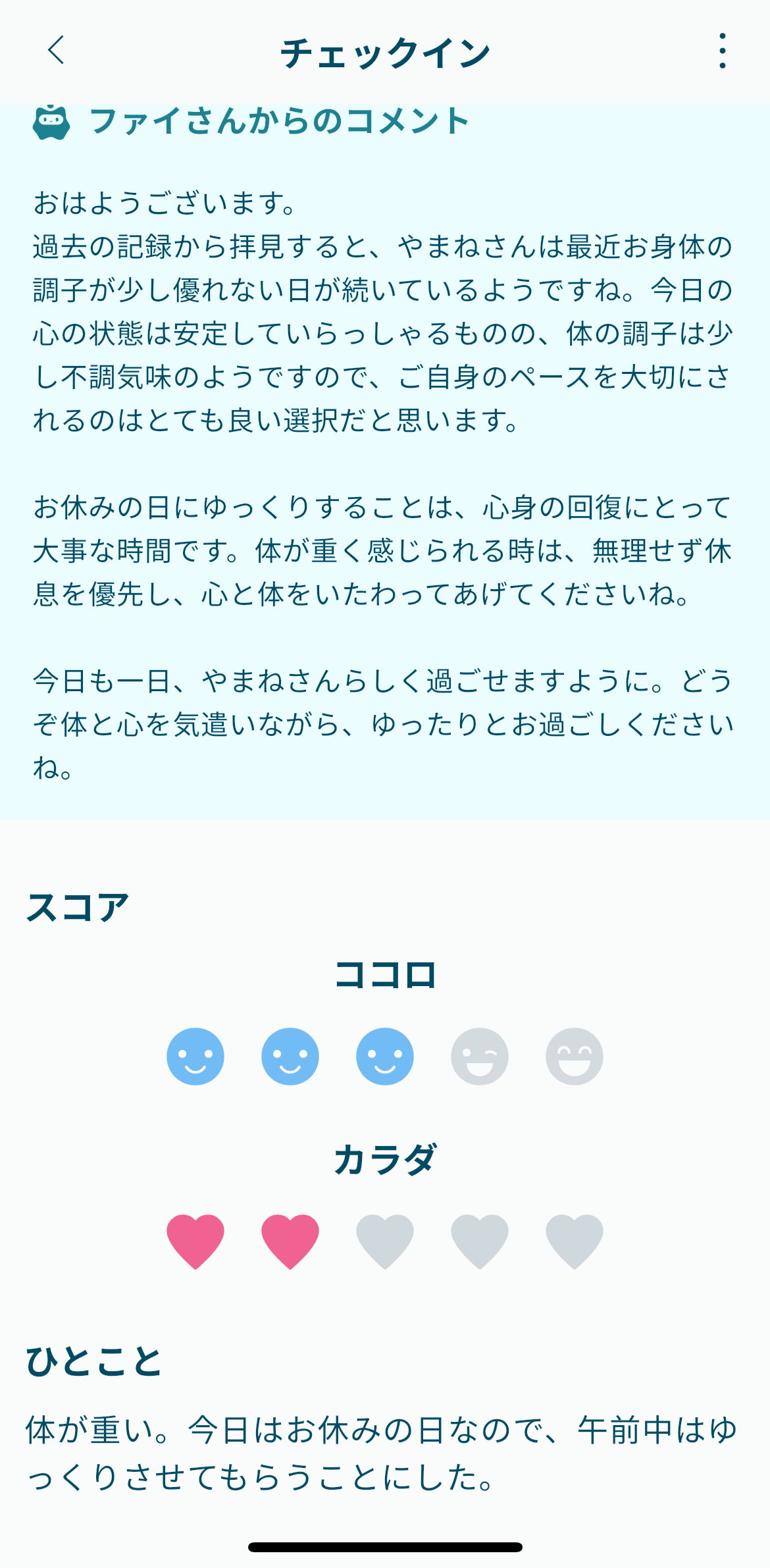 そして、自分が記録したことに対して、毎回AIのファイさんがコメントをくれるんだけど、