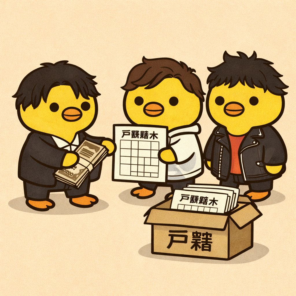 戸籍の売買のイメージです。これじゃあ、すぐ捕まりそうですね💦
