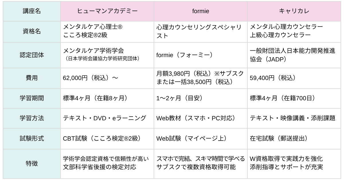 心理資格系の通信講座の比較表